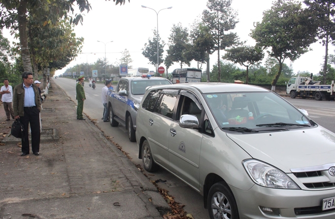Lực lượng Phòng CSGT Công an tỉnh Thừa Thiên Huế và Thanh tra Sở GTVT chốt chặn, kiểm tra một ôtô vận tải hành khách trái phép.