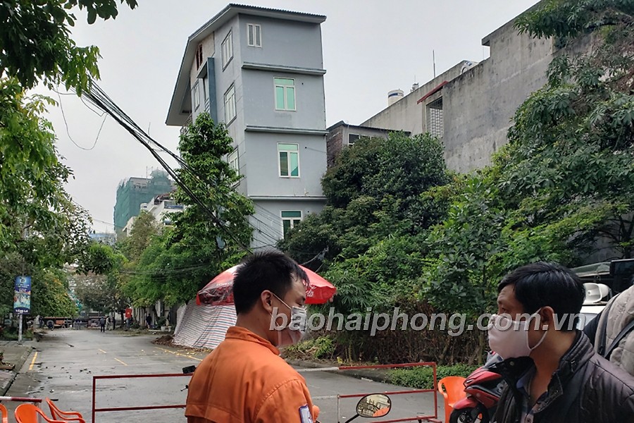 Ngày 02/4, UBND phường Đông Khê (quận Ngô Quyền) lập rào chắn toàn bộ các tuyến đường chung quanh công trình nhà ở bị nghiêng có nguy cơ sụp, đổ tại thửa số 23A, lô 26D, khu đô thị ngã 5 – sân bay Cát Bi.
