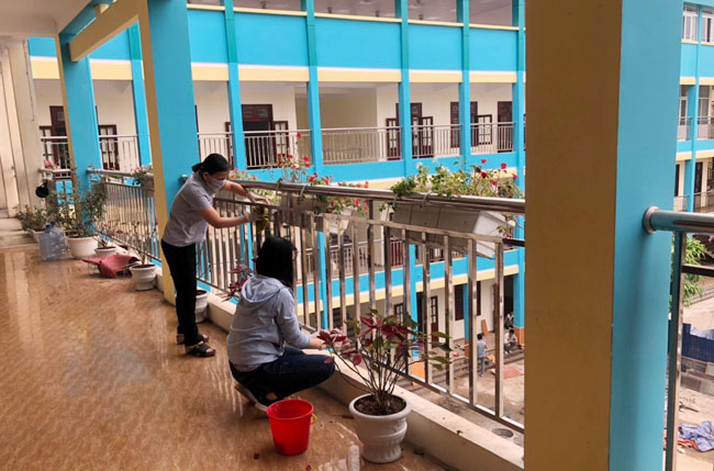 Ngày hôm nay, các trường THCS trên địa bàn quận Lê Chân tất bật cho công tác phun khử khuẩn, vệ sinh khuôn viên trường học, các phòng học, đảm bảo an toàn để đón học sinh lớp 9 trở lại trường vào ngày mai 23/4, sau thời gian dài nghỉ phòng dịch COVID-19.