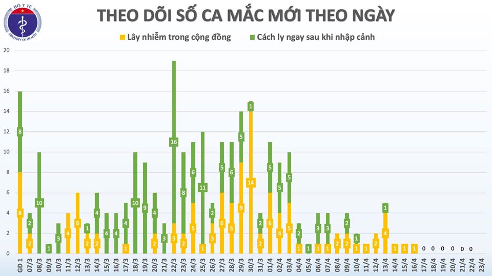 Như vậy, tính từ sáng ngày 16/4 đến nay đã 1 tuần liên tiếp, Việt Nam không ghi nhận ca mắc mới COVID-19, số ca mắc hiện vẫn là 268.