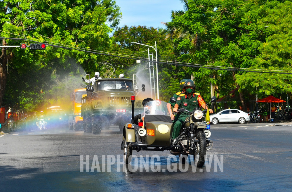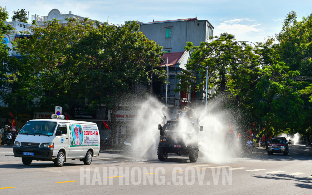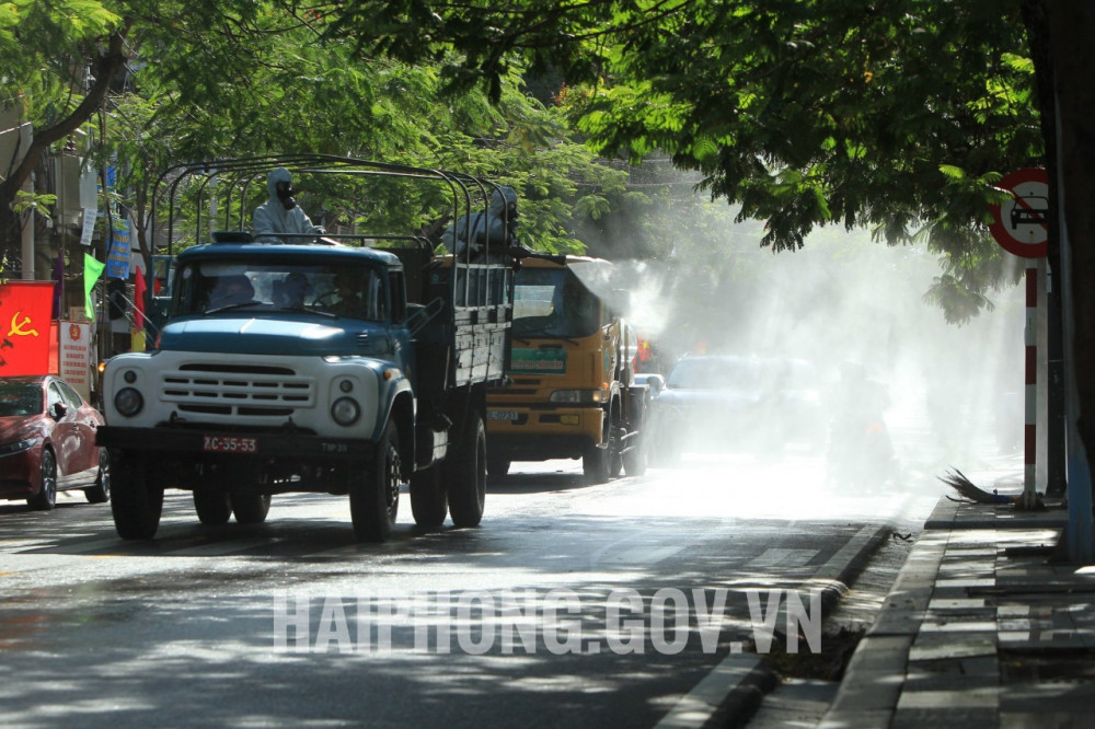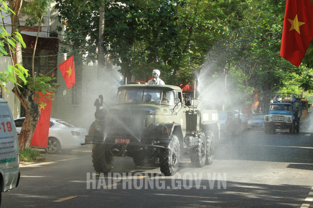 Hóa chất sử dụng là Cloramin B25%, Clorine 70% clo hoạt tính; hàm lượng dung dịch phun khử trùng: dung dịch có chứa clo hoạt tính hàm lượng 0,1%. Trung tâm Y tế dự phòng sử dụng máy phun 4 vòi đặt trên xe ô tô; Phòng Hóa học – Bộ Tư lệnh Quân khu 3 sử dụng 3 xe tiêu tẩy; cùng với xe téc cấp nước của Công ty TNHH MTV Môi trường đô thị Hải Phòng.