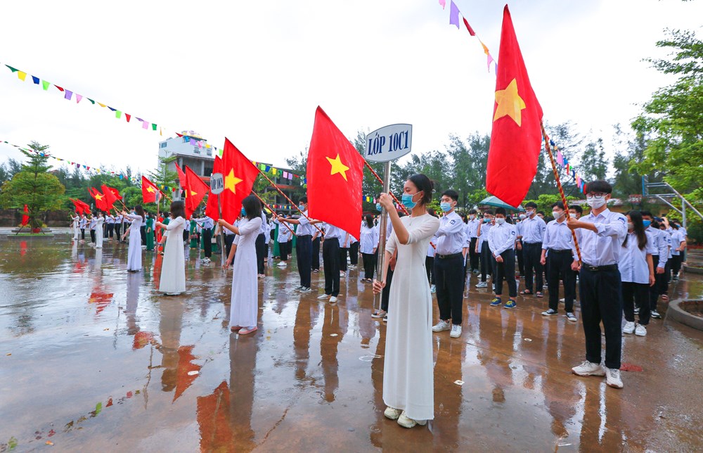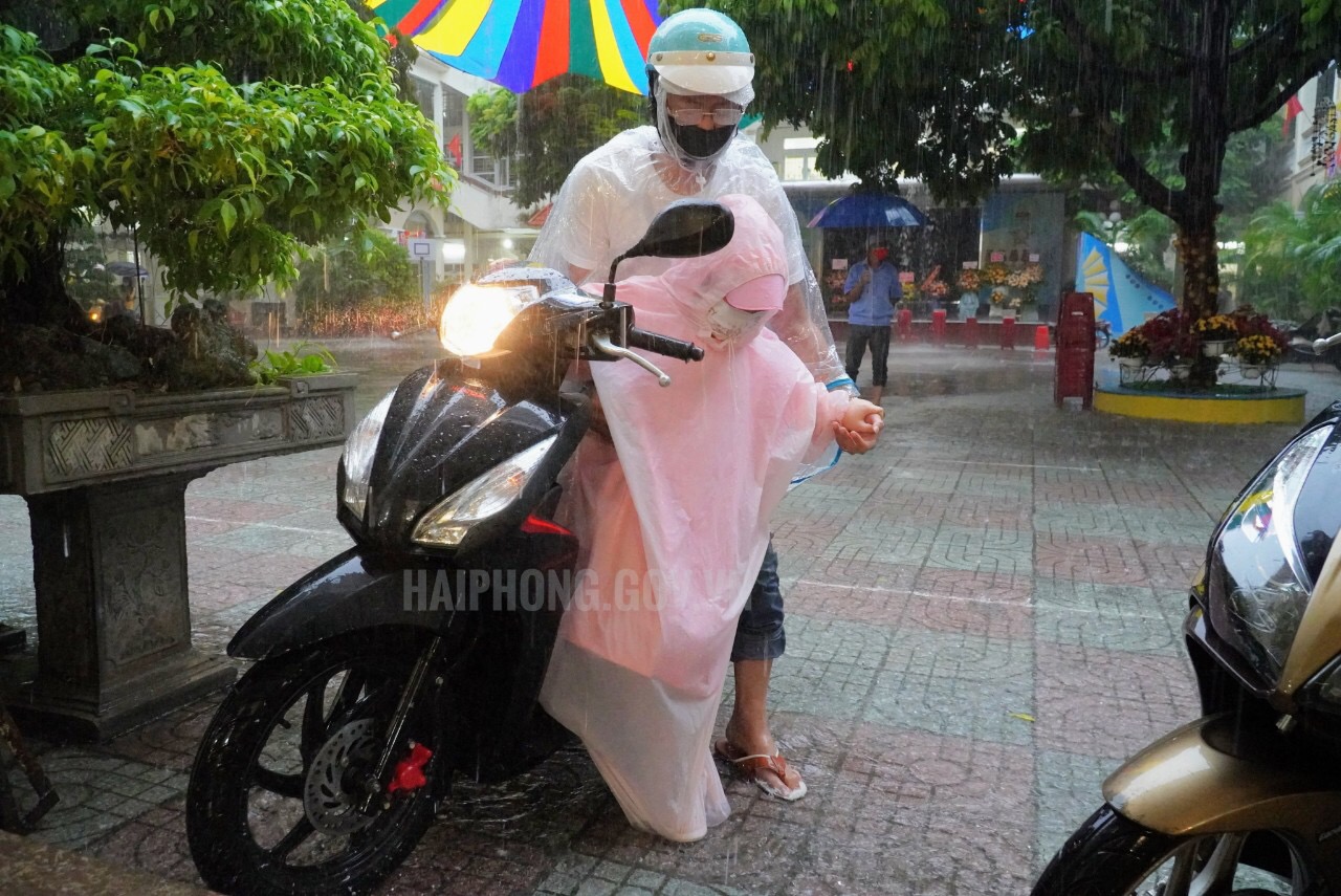 Sáng nay, tại Hải Phòng có mưa lớn. Vì vậy, hầu hết các trường học trên địa bàn thành phố tổ chức khai giảng trên hội trường và được truyền trực tiếp đến các lớp học. Mặc dù có những hạn chế về không gian nhưng không khí ngày khai trường vẫn trang nghiêm, náo nức, rộn ràng. Chương trình Lễ khai giảng ngắn gọn, không quá 35 phút, đảm bảo các yêu cầu về phòng, chống dịch bệnh COVID-19 theo quy định.