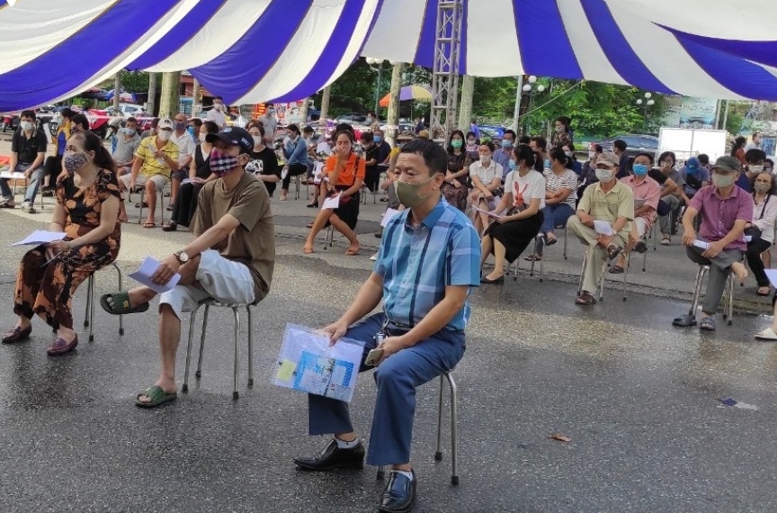 Người dân đến tiêm được đón tiếp, hướng dẫn khai báo thông tin, khám sàng lọc, tiêm và theo dõi sau tiêm đúng quy trình, bảo đảm tuân thủ thông điệp 5K và các quy định khác về phòng dịch.
