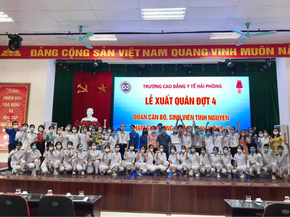 Ngày 14/7, gần 60 sinh viên Trường Cao đẳng Y tế Hải Phòng vừa xuất quân đợt 4 tham gia hỗ trợ thành phố phòng chống dịch COVID-19.
