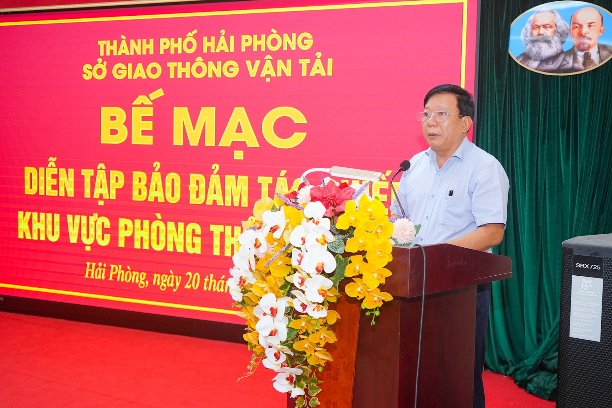 Phát biểu tại Bế mạc Diễn tập, Phó Chủ tịch UBND thành phố Nguyễn Đức Thọ ghi nhận và biểu dương cán bộ, công chức Sở GTVT, Bộ Chỉ huy quân sự thành phố; các cơ quan, lực lượng liên quan đã làm tốt công tác chuẩn bị, huấn luyện và tổ chức thành công cuộc Diễn tập, đạt mục đích, yêu cầu đề ra bảo đảm an toàn tuyệt đối về người, phương tiện và vũ khí trang bị.
