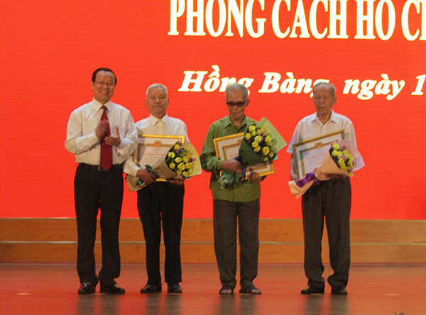 Nhân dịp này, Ban Thường vụ Quận ủy tổ chức trao 111 Huy hiệu Đảng cho các đảng viên, trong đó 3 đảng viên được trao Huy hiệu 70 năm tuổi Đảng; 2 đảng viên được trao Huy hiệu 60 năm tuổi Đảng; 6 đảng viên được trao Huy hiệu 55 năm tuổi Đảng; 47 đảng viên được trao Huy hiệu 50 năm tuổi Đảng; 12 đảng viên được trao Huy hiệu 45 năm tuổi Đảng; 14 đảng viên được trao Huy hiệu 40 năm tuổi Đảng và 27 đảng viên được trao Huy hiệu 30 năm tuổi Đảng. Quận ủy Hồng Bàng cũng tặng Giấy khen cho các tập thể, cá nhân tiêu biểu trong học tập và làm theo tư tưởng, đạo đức, phong cách Hồ chí Minh 2 năm qua.