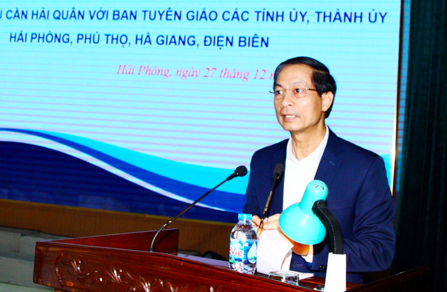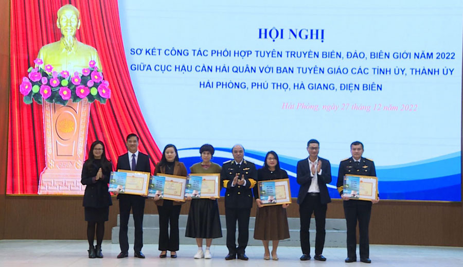 Sáng 27/12, Ban Tuyên giáo Thành uỷ Hải Phòng và Cục Hậu cần Hải quân chủ trì tổ chức Hội nghị sơ kết công tác phối hợp tuyên truyền biển, đảo, biên giới năm 2022 giữa Cục Hậu cần Hải quân với Ban Tuyên giáo các Tỉnh ủy, Thành ủy Hải Phòng, Phú Thọ, Hà Giang và Điện Biên. Dự Hội nghị có đồng chí Chuẩn đô đốc Đỗ Văn Yên, Phó Chính uỷ Quân chủng Hải quân; đại diện lãnh đạo một số cơ quan Ban Tuyên giáo Trung ương, Quân chủng Hải quân và Ban Tuyên giáo các tỉnh Phú Thọ, Hà Giang, Điện Biên.
