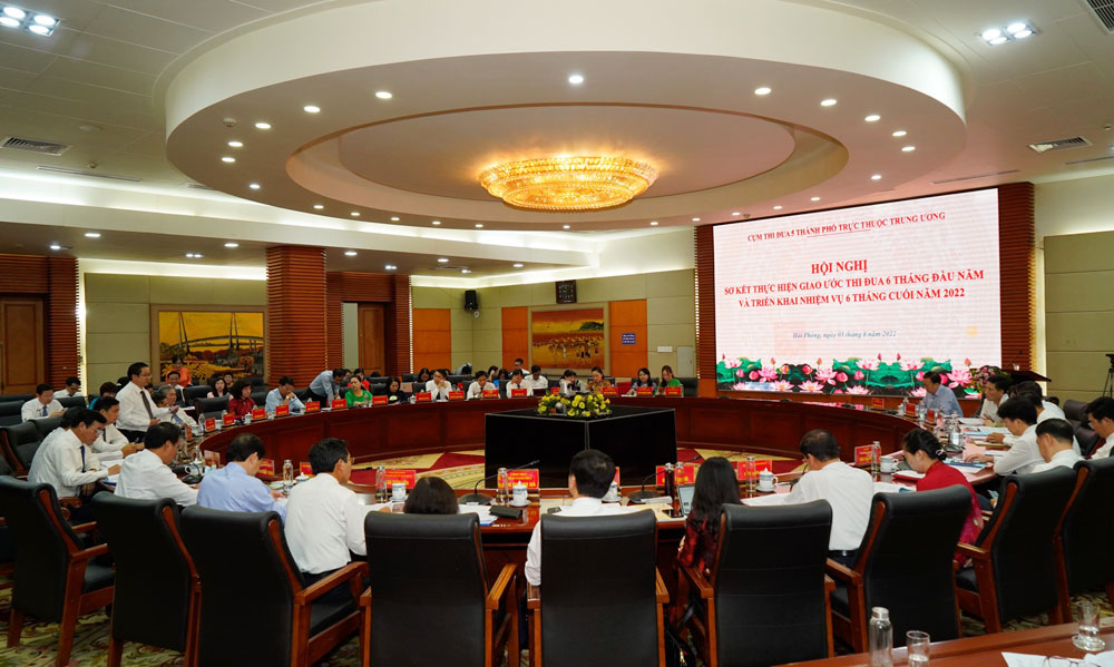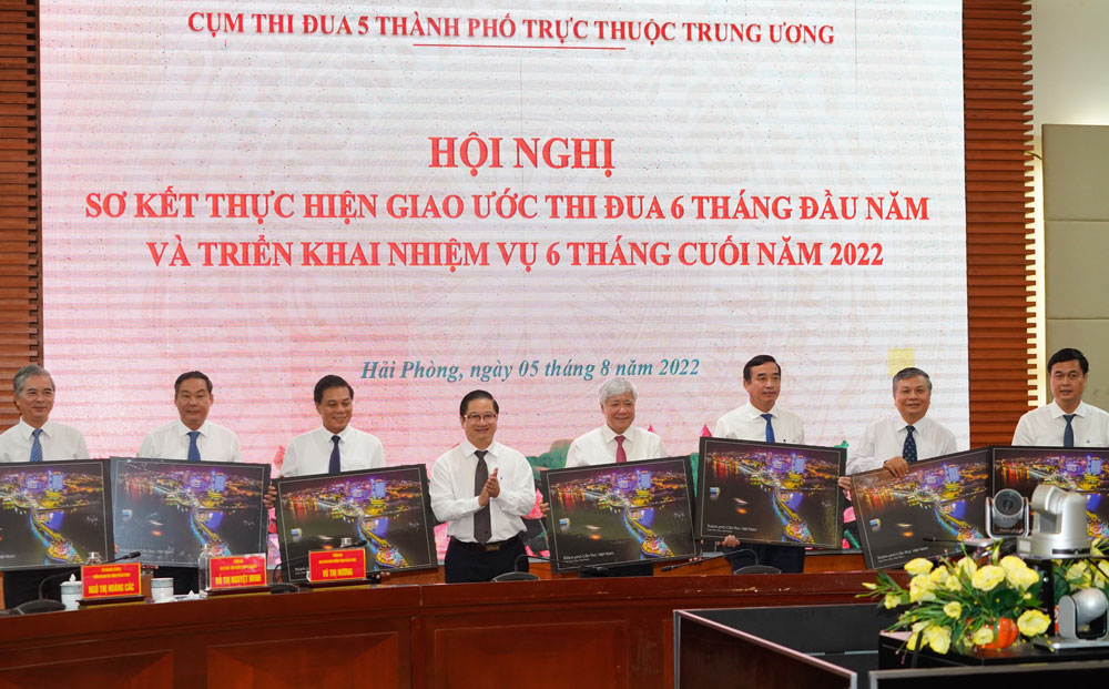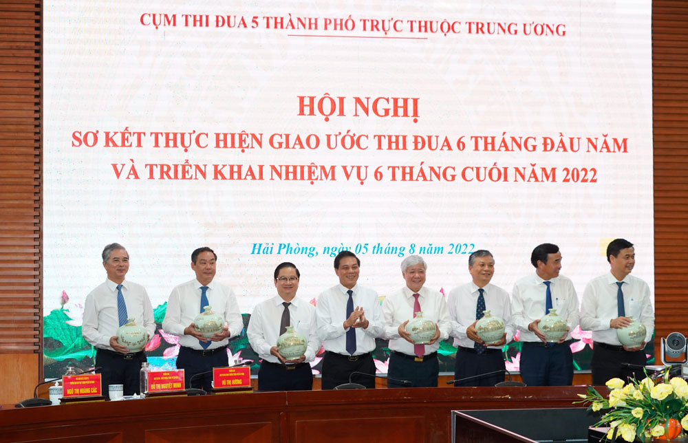 Sáng 5/8, UBND thành phố Hải Phòng (đơn vị Cụm phó năm 2022) tổ chức Hội nghị sơ kết thực hiện giao ước thi đua 6 tháng đầu năm 2022 của Cụm thi đua 5 thành phố trực thuộc Trung ương (thành phố Hà Nội, thành phố Hồ Chí Minh, thành phố Đà Nẵng, thành phố Hải Phòng, thành phố Cần Thơ).