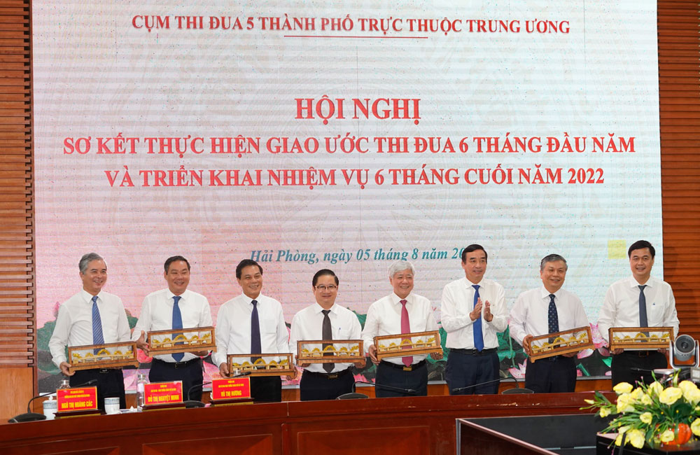 Theo báo cáo tại Hội nghị về kết quả thực hiện giao ước thi đua 6 tháng đầu năm 2022 của Cụm thi đua 5 thành phố trực thuộc Trung ương nêu rõ: Về tình hình thực hiện các chỉ tiêu phát triển kinh tế-xã hội, quốc phòng-an ninh theo các chỉ tiêu Chính phủ giao và Nghị quyết HĐND các thành phố, các thành phố đã ban hành chỉ thị, kế hoạch, chương trình hành động nhằm triển khai, thực hiện các nhiệm vụ trọng tâm về phát triển kinh tế-xã hội, quốc phòng-an ninh năm 2022; tổng sản phẩm trên địa bàn của 5 thành phố đều tăng trên 7% so với cùng kỳ năm 2021; tổng thu ngân sách của 5 thành phố đạt trên 488.820 tỷ đồng, tăng so cùng kỳ năm 2021; kim ngạch xuất khẩu, kim ngạch nhập khẩu, tổng doanh thu du lịch của cả 5 thành phố đều tăng; kết quả triển khai công tác cải cách hành chính của các thành phố tiếp tục được duy trì, cải thiện, nâng cao; công tác đối ngoại được tăng cường; quốc phòng-an ninh được củng cố; an ninh chính trị, trật tự an toàn xã hội được đảm bảo.