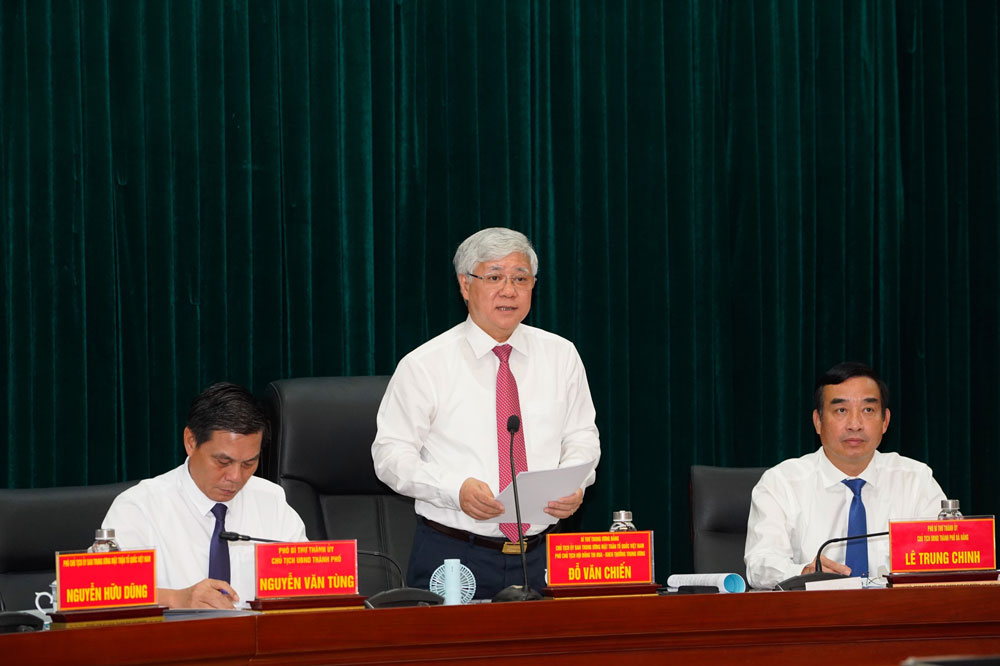 Đồng chí Đỗ Văn Chiến, Bí thư Trung ương Đảng, Chủ tịch Ủy ban Trung ương MTTQ Việt Nam, Phó Chủ tịch Hội đồng Thi đua-Khen thưởng Trung ương đồng tình với các nhóm nhiệm vụ đã đề ra trong 6 tháng cuối năm Cụm thi đua 5 thành phố đã đề ra; đồng thời đề câp đến một nội dung để các thành phố nghiên cứu, vận dụng vào thực tiễn của địa phương mình, đó là: Các thành phố đã đạt được những kết quả quan trọng, nhưng tình hình chung quốc tế, cả nước, mỗi thành phố đều phải đối mặt với những khó khăn, thách thức, diễn biến dịch bệnh còn diễn biến phức tạp sẽ tác động đến từng thành phố, phải đối mặt với một số áp lực như lạm phát, giải ngân vốn đầu tư công, các thế lực thù địch còn nhiều tiềm ẩn phức tạp, vì vậy các địa phương cần phải quán triệt sâu sắc, hành động quyết liệt để thực hiện hiệu quả các nghị quyết, chỉ thị của Trung ương. Trong thực hiện các phong trào thi đua yêu nước chú ý toàn diện các vấn đề, giải quyết hài hòa các mối quan hệ, phải có tính kế thừa và đổi mới, phát triển kinh tế phải song hành với đảm bảo an sinh xã hội. Chú ý đến một số vấn đề mới phát sinh như tâm lý xã hội nhất là sau đại dịch Covid-19; phải giải quyết những bức xúc của Nhân dân ngay từ cơ sở. Bên cạnh đó, các địa phương cần tăng cường triển khai nhân rộng những cách làm hay, điển hình tiên tiến trong các phong trao thi đua để học hỏi, trao đổi kinh nghiệm…