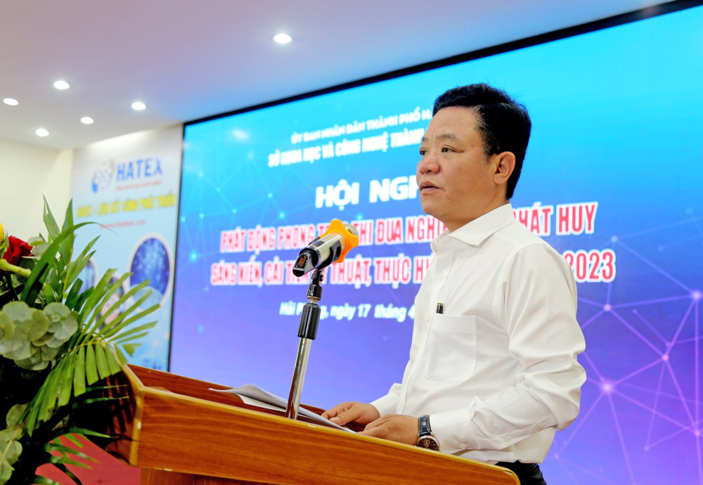 Phát động phong trào thi đua nghiên cứu, phát huy sáng kiến, cải tiến kỹ thuật thực hiện chủ đề năm 2023, đồng chí Trần Quang Tuấn, Giám đốc Sở Khoa học và Công nghệ khẳng định: Sở Khoa học và Công nghệ với vai trò là cơ quan thường trực, đầu mối về các hoạt động sáng kiến của UBND thành phố luôn sẵn sàng hỗ trợ, hướng dẫn và phối hợp với các tổ chức, cơ quan, đơn vị để thúc đẩy mạnh mẽ phong trào thi đua và nâng cao hơn nữa chất lượng của các sáng kiến, các giải pháp cải tiến kỹ thuật tại đơn vị; qua đó khẳng định khoa học, công nghệ và đổi mới sáng tạo thực sự là động lực thúc đẩy quá trình phát triển kinh tế xã hội, đẩy nhanh sự nghiệp công nghiệp hóa, hiện đại hóa, góp phần quan trọng trong công cuộc phát triển kinh tế-xã hội của thành phố. Đồng thời, đồng chí đề nghị các cơ quan, đơn vị, đoàn thể và các doanh nghiệp trên địa bàn thành phố phát động mạnh mẽ phong trào thi đua nghiên cứu, phát huy sáng kiến, cải tiến kỹ thuật cho phù hợp đến từng đối tượng là cán bộ, công chức, viên chức, người lao động trong cơ quan, đơn vị mình, và lan tỏa các phong trào thi đua trở thành phong trào rộng lớn không chỉ của cán bộ, công chức, viên chức, người lao động mà của quần chúng nhân dân nói chung. Thủ trưởng các cơ quan, đơn vị, đoàn thể, doanh nghiệp tiếp tục có những sự lãnh đạo chỉ đạo tập trung thống nhất, đúng đắn và có sự phối hợp chặt chẽ giữa chính quyền và các đoàn thể, bảo đảm các mặt hoạt động thi đua đồng bộ với nhau, nhằm vào mục đích chung, vào mục tiêu đã định theo đúng chủ trương, đường lối của Đảng và chính sách, pháp luật của Nhà nước. Chú trọng khen thưởng kịp thời, nhân rộng điển hình tiên tiến.