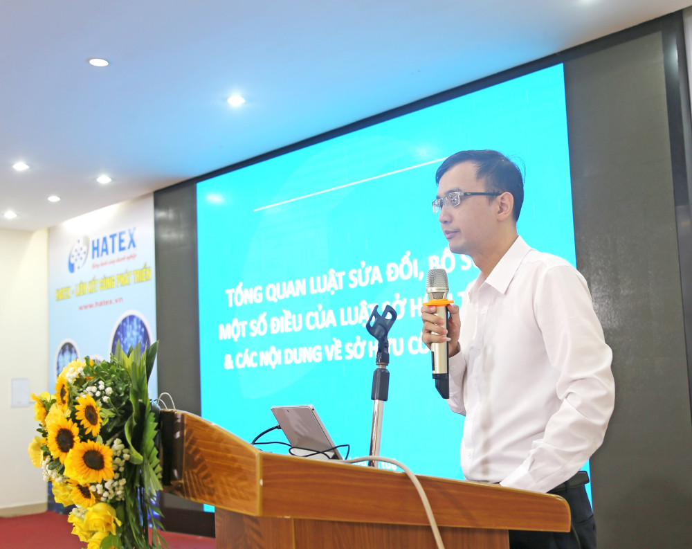 Tại Hội nghị, Phó Trưởng phòng Phòng Pháp chế và Chính sách (Cục Sở hữu trí tuệ, Bộ Khoa học và Công nghệ) Hoàng Anh đã giới thiệu, trao đổi, chia sẻ một số nội dung về: Những điểm mới của Luật sửa đổi, bổ sung một số điều của Luật Sở hữu trí tuệ năm 2022; hướng dẫn áp dụng Luật Sở hữu trí tuệ, Luật sửa đổi bổ sung một số điều của Luật Sở hữu trí tuệ năm 2022 trong thực tiễn; một số vấn đề cần lưu ý trong công tác quản lý sở hữu trí tuệ tại địa phương; công tác bảo vệ quyền sở hữu trí tuệ trên môi trường mạng…