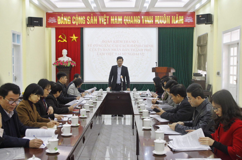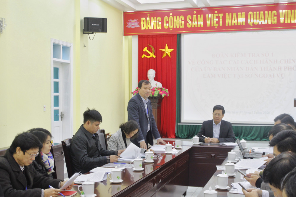 Sáng 17/12, đoàn công tác của UBND thành phố kiểm tra công tác cải cách hành chính (CCHC) năm 2020 tại Sở Ngoại vụ. Phó Chủ tịch Thường trực UBND thành phố Lê Anh Quân làm trưởng đoàn, cùng đi có đại diện lãnh đạo các sở, ban, ngành thành phố.