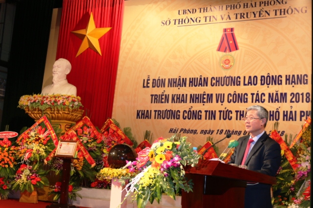 Sáng 19/1, Sở Thông tin và Truyền thông tổ chức Lễ đón nhận Huân chương Lao động hạng Ba, triển khai công tác năm 2018 và khai trương Cổng tin tức thành phố Hải Phòng.