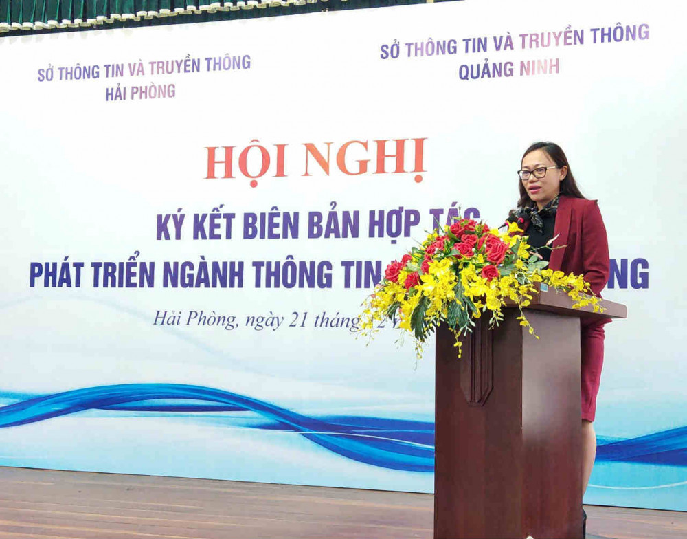 Phát biểu tại buổi lễ ký kết, bà Lê Ngọc Hân, Giám đốc Sở Thông tin và truyền thông Quảng Ninh nhấn mạnh: Việc Sở thông tin và truyền thông 2 địa phương tiến hành ký kết hợp tác chính là một trong nhiều hành động cụ thể của chính quyền 2 địa phương trong việc thực hiện sự hợp tác. Và từ năm 2013 đến nay, sự hợp tác giữa 2 địa phương đã đạt được nhiều kết quả tích cực. “Tôi mong muốn, thông qua sự hợp tác này, chúng tôi sẽ nhận được những chia sẻ về những kinh nghiệm quý, cách làm hay của các đồng nghiệp tại Hải Phòng”, bà Hân chia sẻ.