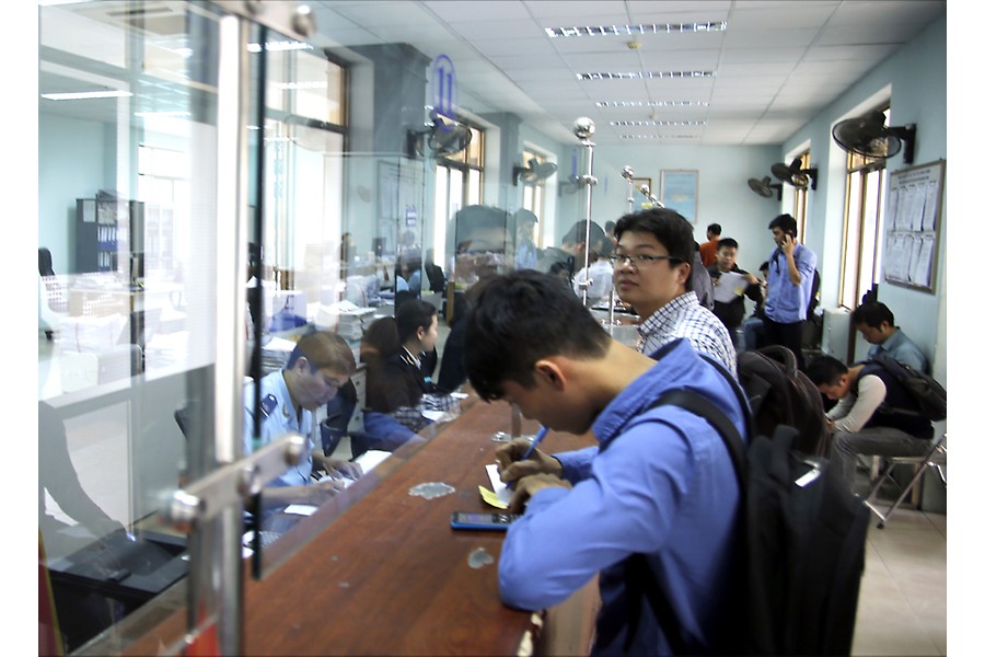 Cán bộ Hải quan cửa khẩu Hải Phòng hướng dẫn khách hàng làm thủ tục thông quan hàng hóa. Ảnh:Phương Duy