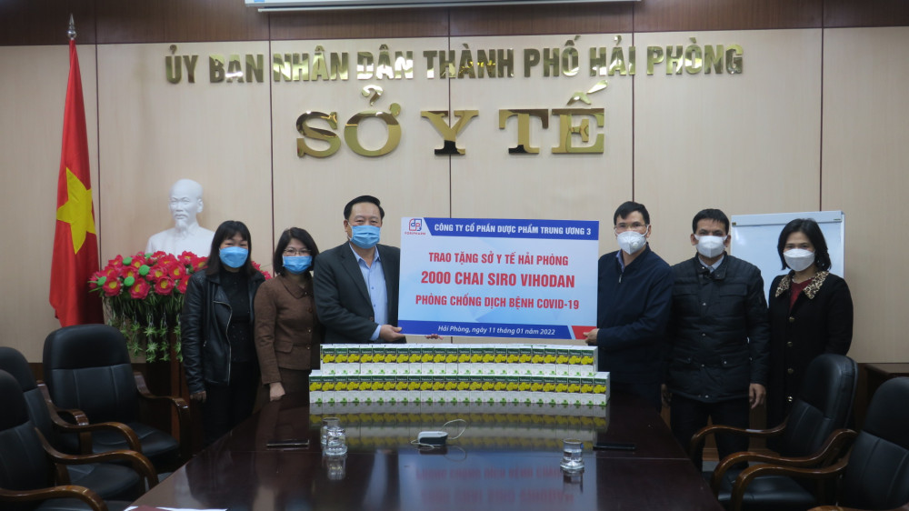 Tại đây, Công ty Cổ phần dược phẩm Trung ương 3 trao tặng 2.000 chai siro Vihodan trị giá 120 triệu đồng. Sản phẩm có công dụng bổ phế, giảm đờm, hỗ trợ làm giảm các triệu chứng ho, đau rát họng, khản tiếng do viêm họng, viêm phế quản, hỗ trợ quá trình điều trị cho người nhiễm COVID-19 khi có triệu chứng.