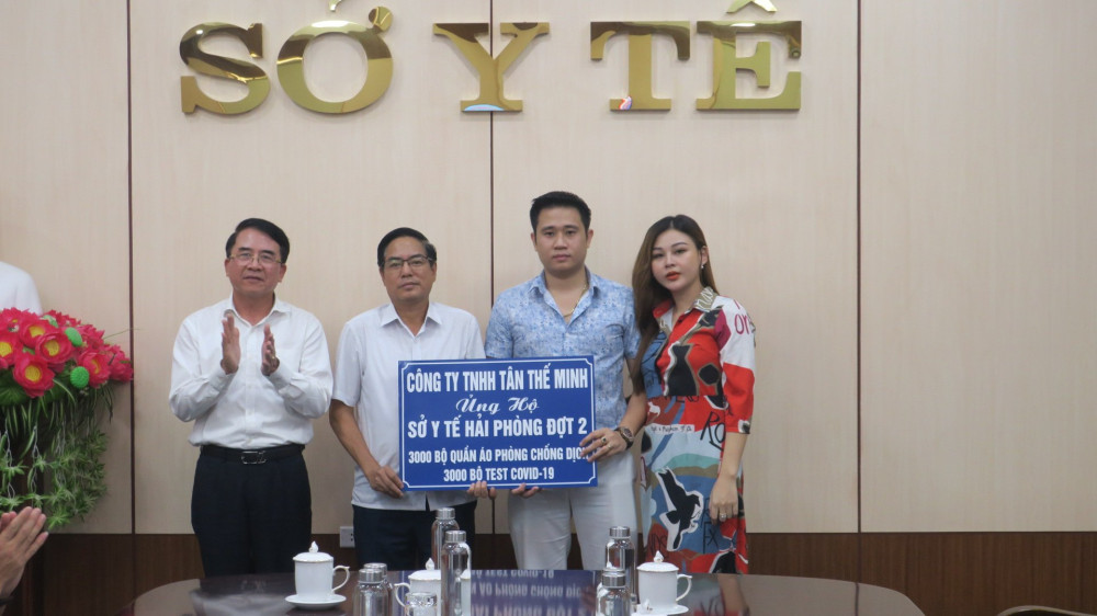 Sáng 12/7, Công ty TNHH dịch vụ sản xuất Tân Thế Minh trao tặng Sở Y tế Hải Phòng 3.000 bộ trang phục phòng hộ chống dịch và 3.000 bộ test xét nghiệm SARS-CoV-2 phục vụ công tác phòng chống dịch COVID-19.
