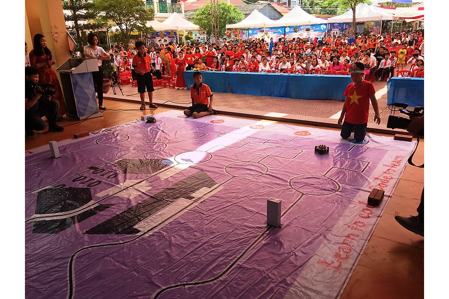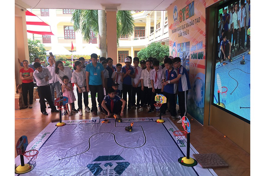 Cuộc thi lập trình và điều khiển robot thu hút đông đảo học sinh khối tiểu học và THCS tham gia, đua tài. Ở khối THCS là nội dung thi robot bắn bóng vào rổ…