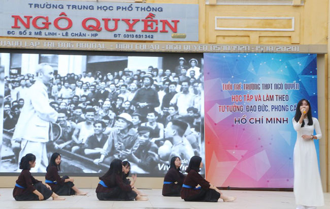 Chiều 29/8, tại Trường THPT Ngô Quyền, Thành đoàn Hải Phòng chỉ đạo Quận đoàn Lê Chân tổ chức chuyên đề điểm cấp thành phố “Ngày hội Tuổi trẻ làm theo lời Bác” nhằm ôn lại và khẳng định giá trị lý luận, thực tiễn sâu sắc của Di chúc của Chủ tịch Hồ Chí Minh; thể hiện sự tôn kính và lòng biết ơn sâu sắc đối với Chủ tịch Hồ Chí Minh.