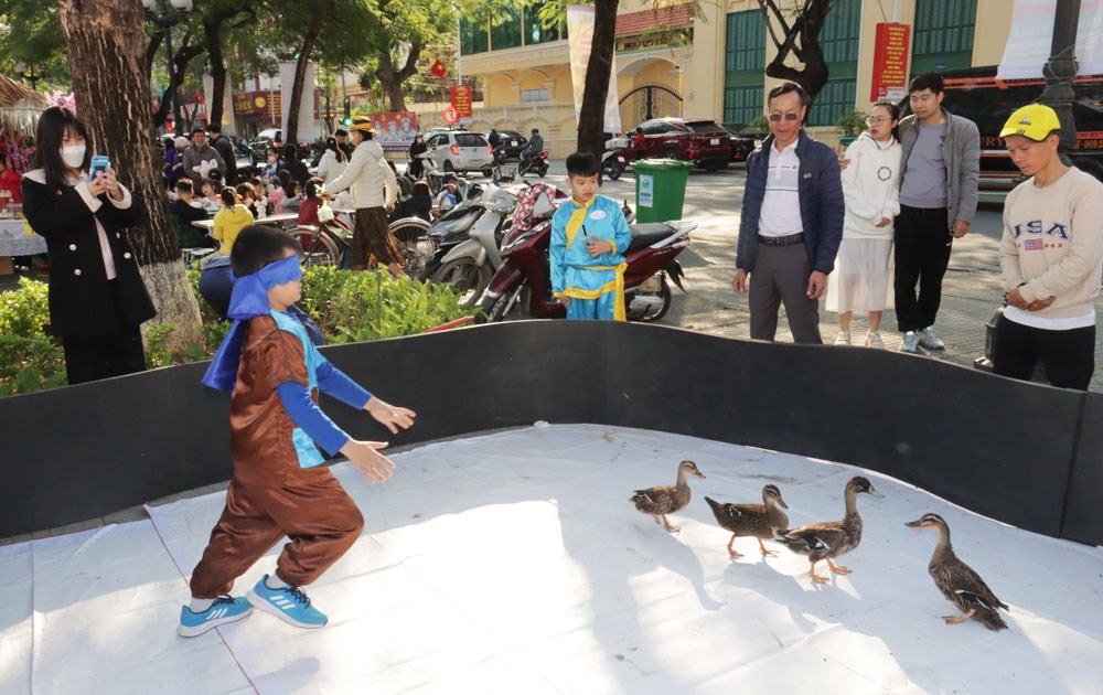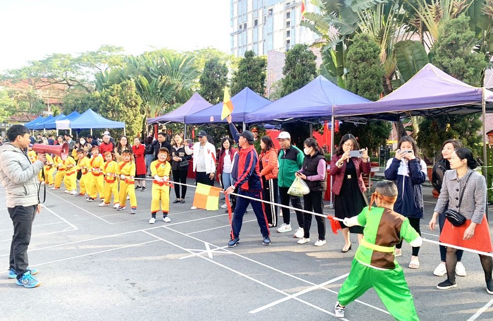 Tại sân Trung tâm thông tin triển lãm và điện ảnh thành phố, các chương trình cờ người, võ cổ truyền, dân vũ thể thao… được tổ chức với sự tham gia của hàng tram các vận động viên đến từ các trường học và câu lạc bộ văn hóa thể thao trên địa bàn quận đã tạo không khí sôi nổi, vui tươi góp phần lưu giữ các giá trị văn hóa truyền thống của dân tộc.