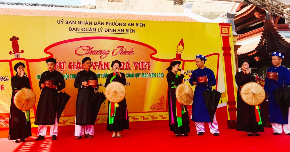 Bên cạnh đó, tại Đình An Biên vào ngày 25/2, phường An Biên tổ chức chương trình “Tự hào văn hóa Việt” với các tiết mục biểu diễn đặc sắc mang đậm nét văn hóa lịch sử như hát ca trù hoa phong lan hát chầu văn cô đôi thượng 1.000 trò chơi dân gian viết thư pháp hát múa các ca khúc về Hải Phòng chương trình góp thêm một không khí hân hoan vui tươi sôi động và đầy tự hào trong lễ hội năm nay.