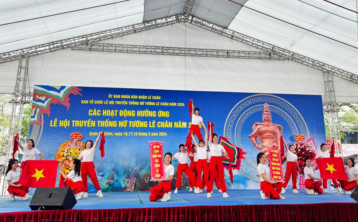 Cùng với đó là Hội thi “Dân vũ thể thao” với chủ đề “Vũ điệu khoẻ, đẹp” hưởng ứng Cuộc vận động “Toàn dân rèn luyện thân thể theo gương Bác Hồ vĩ đại”, với sự tham gia của các đội thi đến từ cán bộ, hội viên, phụ nữ các câu lạc bộ, tổ, nhóm phụ nữ dân vũ rèn luyện thể dục thể thao được thành lập ở các phường, các đơn vị trực thuộc. Các tiết mục dân vũ thể thao đồng đội trên nền nhạc là các ca khúc Việt Nam ca ngợi quê hương, đất nước, gia đình, truyền thống tốt đẹp của phụ nữ Việt Nam, phụ nữ Lê Chân.