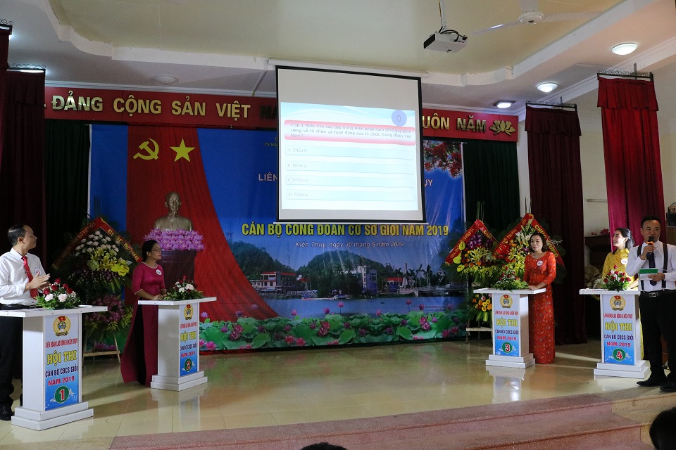 Sáng 30-5, Liên đoàn lao động huyện Kiến Thụy tổ chức hội thi “Cán bộ Công đoàn cơ sở giỏi” năm 2019. Dự hội thi có đồng chí Đào Thị Huyền, Phó Chủ tịch LĐLĐ thành phố cùng đại diện lãnh đạo một số phòng, ban, đơn vị liên quan.