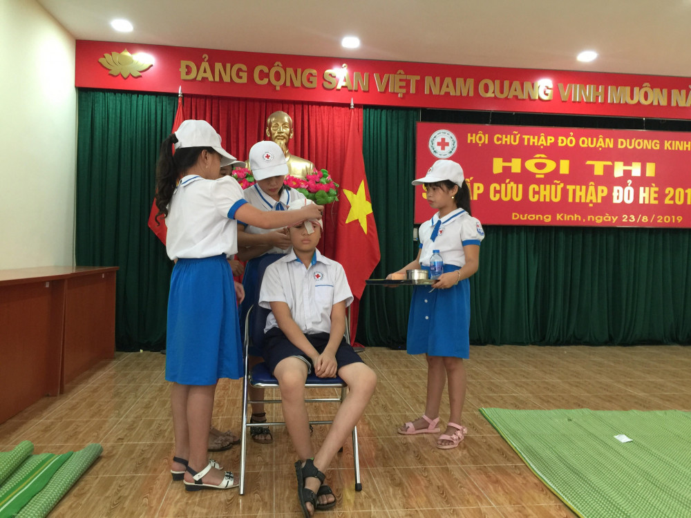 Hội thi Sơ cấp cứu chữ thập đỏ hè quận Dương Kinh năm 2019 thu hút sự tham gia của 12 đội thi với hàng trăm thành viên là học sinh các trường tiểu học và THCS trên địa bàn quận.