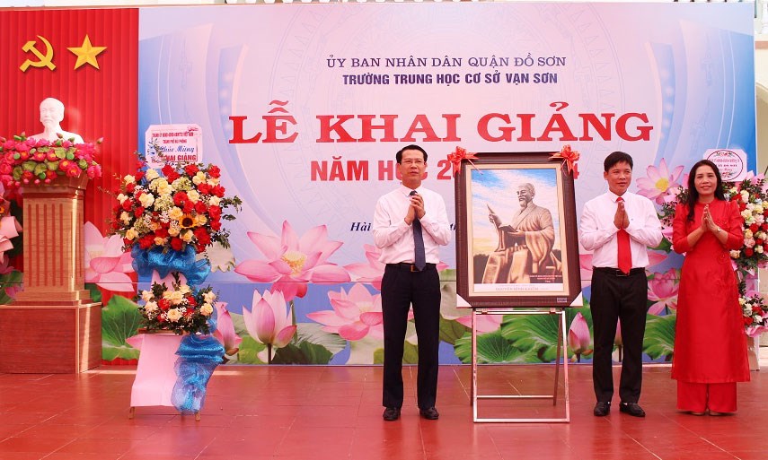 *** Tại quận Đồ Sơn, sáng 5/9, đồng chí Bùi Đức Quang, Phó Chủ tịch HĐND thành phố dự Lễ khai giảng tại Trường THCS Vạn Sơn