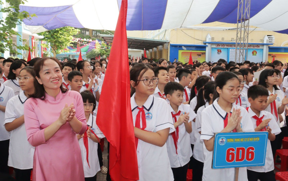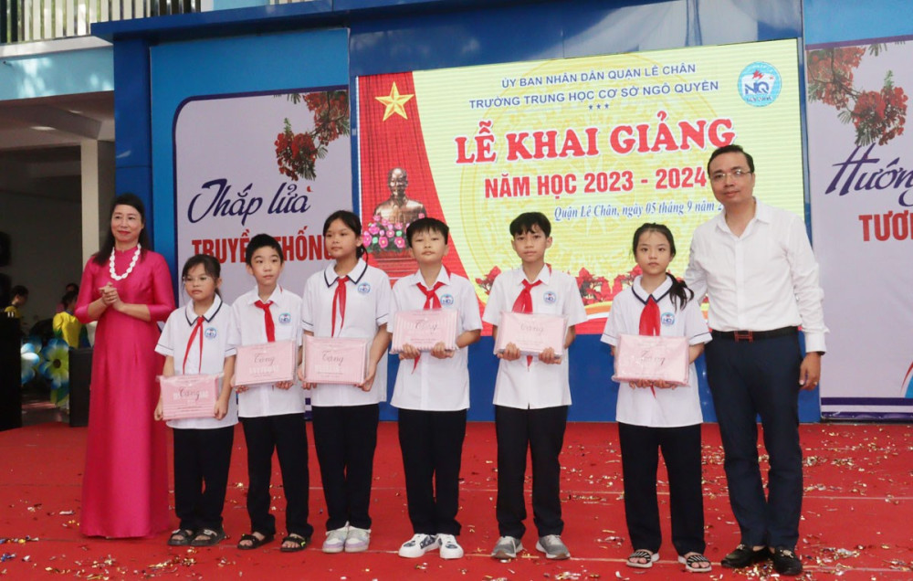 *** Tại quận Lê Chân, Trường THCS Ngô Quyền khai giảng năm học 2023-2024. Tới dự có đồng chí Vũ Thị Tố Nga, Phó Chủ tịch HĐND quận.