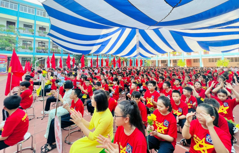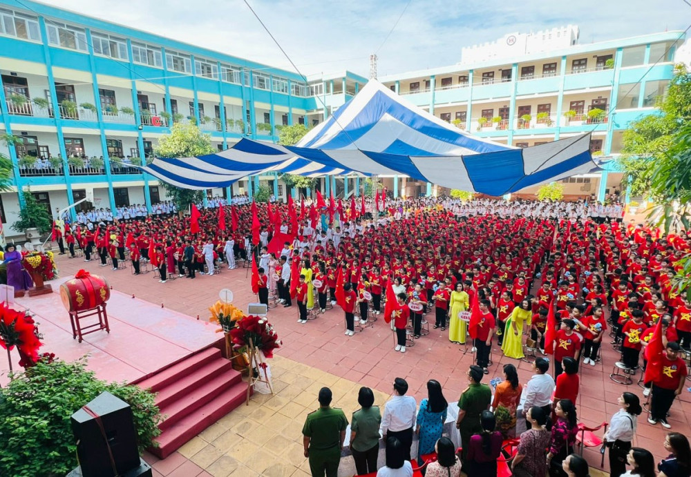 * Tại Trường THCS Trần Phú, hơn 3.000 học sinh nhà trường hân hoan bước vào khai giảng năm học 2023-2024.