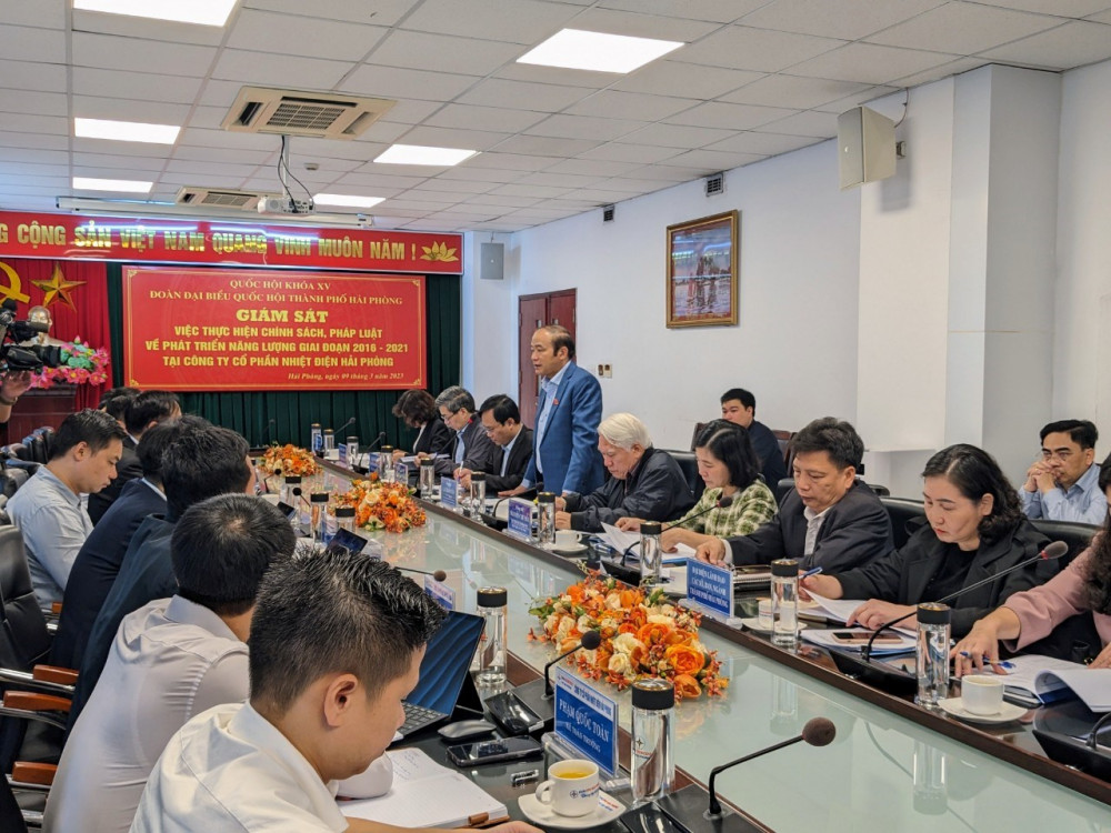 Sáng 9/3, Đoàn Đại biểu Quốc hội Hải Phòng giám sát Chuyên đề thực hiện chính sách, pháp luật về phát triển năng lượng giai đoạn 2016-2021 tại Công ty Cổ phần Nhiệt điện Hải Phòng. Đồng chí Lã Thanh Tân, Phó Trưởng Đoàn đại biểu Quốc hội chuyên trách chủ trì cuộc giám sát. Cùng dự có các đồng chí trong Đoàn đại biểu Quốc hội; đại diện lãnh đạo các Sở, ngành chức năng thành phố.