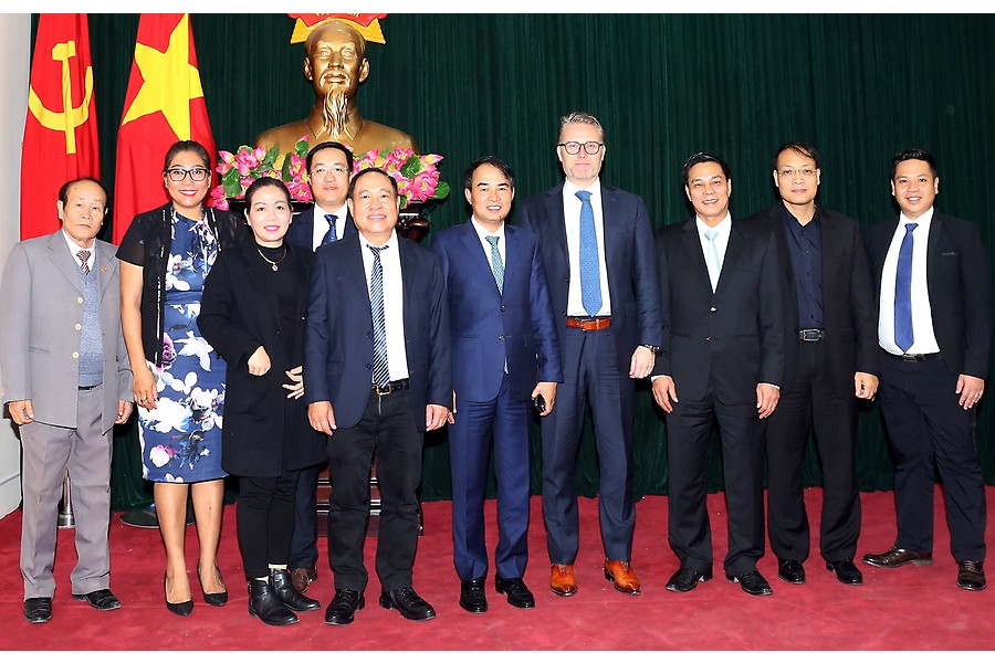 Đồng chí Nguyễn Văn Tùng, Chủ tịch UBND thành phố tiếp và làm việc với lãnh đạo Tập đoàn Storm Capital Partners và Công ty cổ phần đầu tư xây dựng bất động sản Việt Phát. Ảnh: Duy Thính