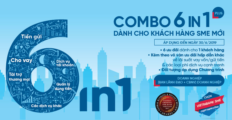 Gói Combo 6 in 1: Đây là gói sản phẩm (SP) thúc đẩy bán dành cho KHDN VVN mới – đa dạng ưu đãi về dịch vụ (DV) tài khoản, tiền gửi, tiền vay, quản lý dòng tiền, tài trợ thương mại và các SPDV khác. Gói Combo này được đánh giá là chính sách khuyến khích KH mới đúng thời điểm và thực tế đã thúc đẩy rất mạnh lượng KH mới.