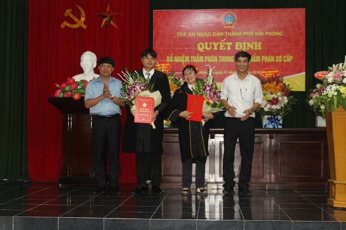 Cán bộ TAND quận Kiến An nhận quyết định bổ nhiệm (Ảnh Hồng Hải)