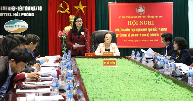 Phát biểu chỉ đạo hội nghị, đồng chí Trương Thị Mai, Bí thư Trung ương Đảng, Trưởng Ban Dân vận Trung ương ghi nhận và đánh giá cao kết quả đạt được của các tổ chức, cá nhân trong thực hiện Quyết định 217 và 218 của Bộ Chính trị, nhất là cách làm của Ủy ban MTTQ Việt Nam thành phố Hồ Chí Minh, Hà Nội, Hải Phòng và một số tỉnh, thành phố khác.