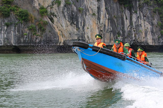 Cán bộ, chiến sỹ Đồn Biên phòng Cát Bà làm nhiệm vụ tuần tra, kiểm soát trên biển. Ảnh: Lê Dần