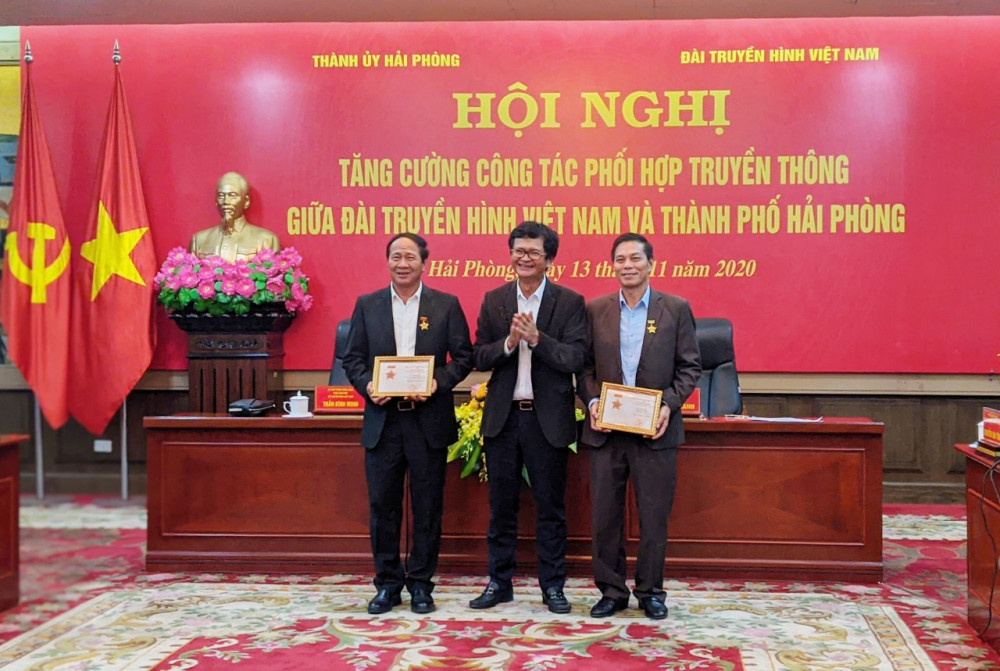 Nhân dịp này, đồng chí Lê Văn Thành, Ủy viên Trung ương Đảng, Bí thư Thành ủy, Chủ tịch HĐND thành phố và đồng chí Nguyễn Văn Tùng, Phó Bí thư Thành ủy, Chủ tịch UBND thành phố vinh dự nhận Kỷ niệm chương Vì sự nghiệp truyền hình do Tổng Giám đốc Đài Truyền hình Việt Nam Trần Bình Minh trao tặng.