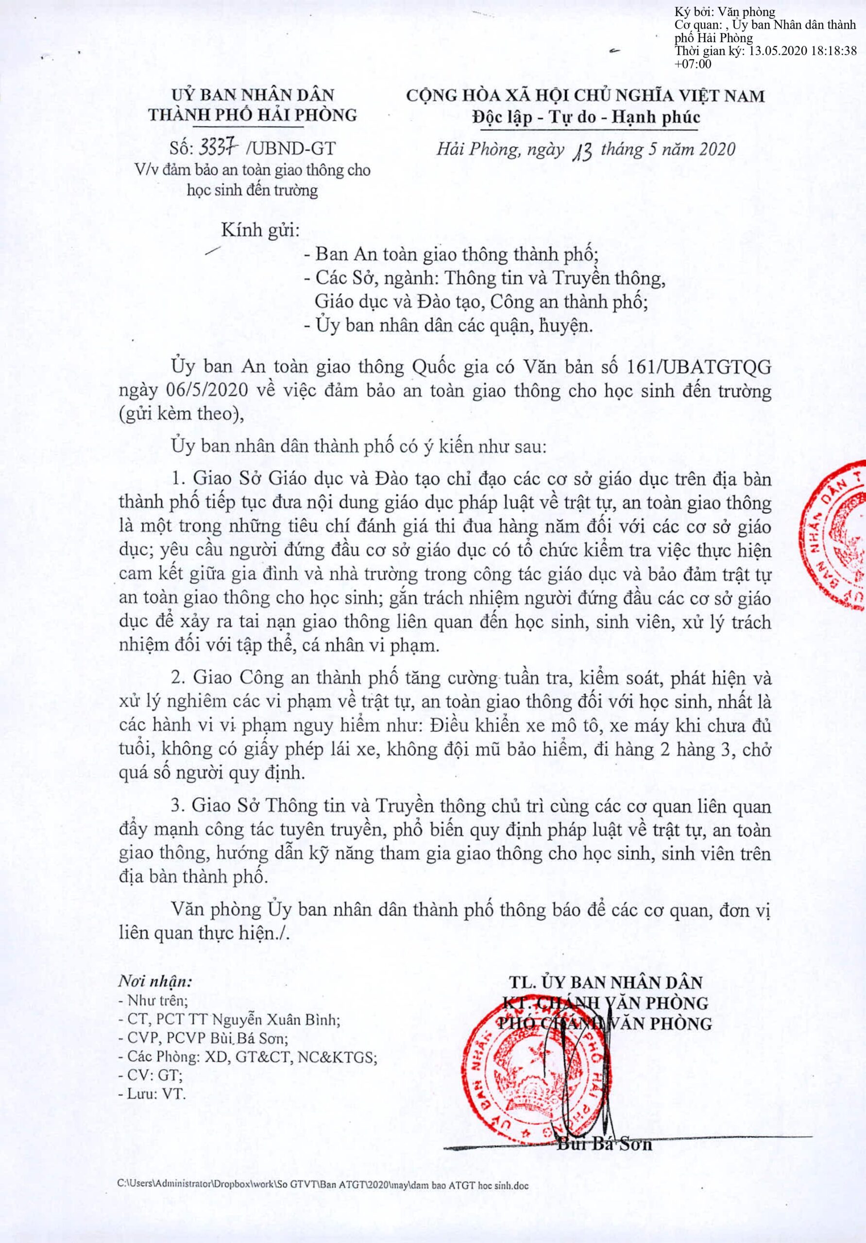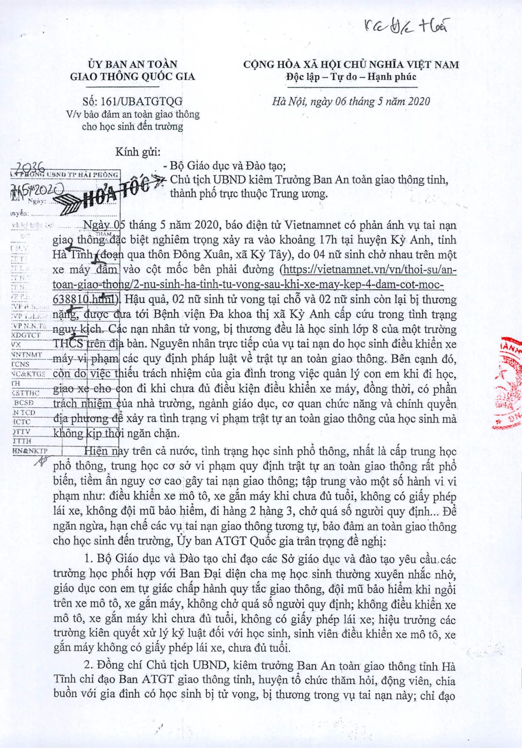 Ủy ban nhân dân thành phố Hải Phòng vừa có văn bản số 3337/UBND-GT ngày 13/5/2020 về việc đảm bảo an toàn giao thông cho học sinh đến trường.
