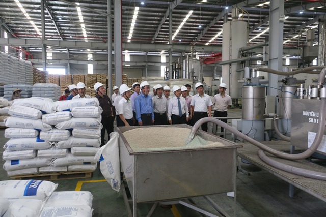 Các vị đại biểu thăm xưởng sản xuất của Công ty Cổ phần Nhựa Thiếu niên Tiền Phong
