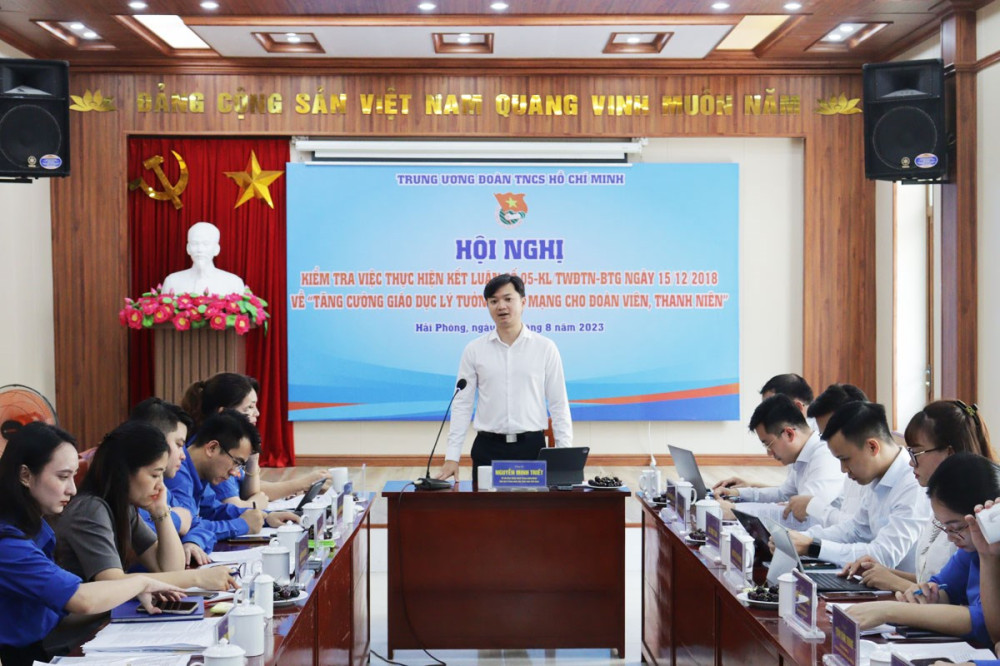 Chiều 25/8, Đoàn kiểm tra của Trung ương Đoàn TNCS HCM do đồng chí Nguyễn Minh Triết, Bí thư Trung ương Đoàn, Chủ tịch Trung ương Hội Sinh viên Việt Nam làm Trưởng đoàn làm việc với Thành đoàn Hải Phòng kiểm tra chuyên đề việc thực hiện Kết luận số 05-KL/TWĐTN-BTG ngày 15/12/2018 của Ban Chấp hành Trung ương Đoàn về “Tăng cường giáo dục lý tưởng cách mạng cho đoàn viên, thanh niên” tại thành phố Hải Phòng.