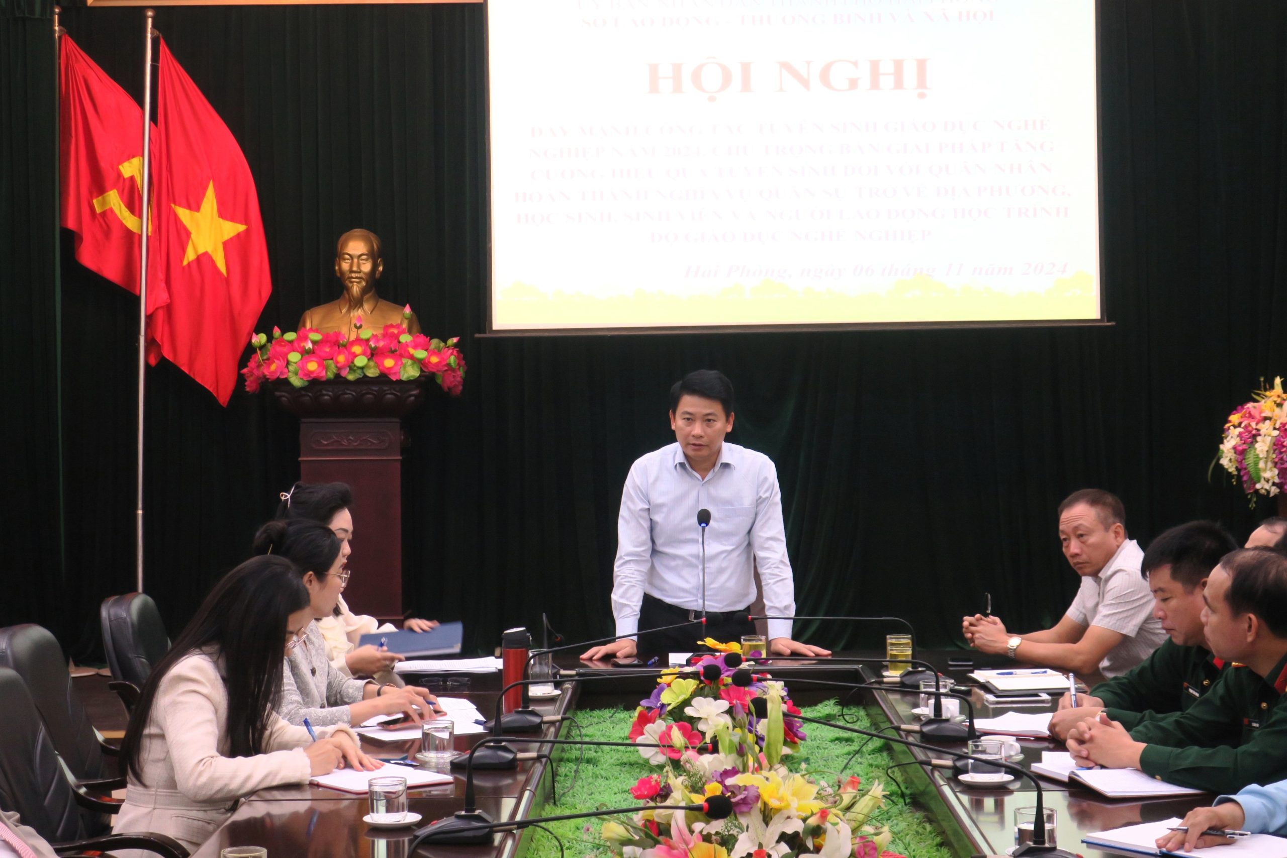 Sáng 6/11, Sở Lao động – Thương binh và Xã hội tổ chức Hội nghị bàn về giải pháp tăng cường hiệu quả tuyển sinh giáo dục nghề nghiệp đối với quân nhân hoàn thành nghĩa vụ quân sự trở về địa phương. Giám đốc Sở Lao động – Thương binh và Xã hội Nguyễn Cao Lân chủ trì Hội nghị.