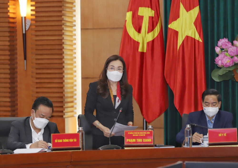 Trước đó, đồng chí Phạm Thu Xanh đã thông tin trước tình hình các ca nhiễm lớn tại cộng đồng để đảm bảo thích ứng an toàn, Ban chỉ đạo Phòng chống dịch thành phố đề nghị các địa phương tạm thời dừng việc chăng dây và treo biển tại nhà F0.