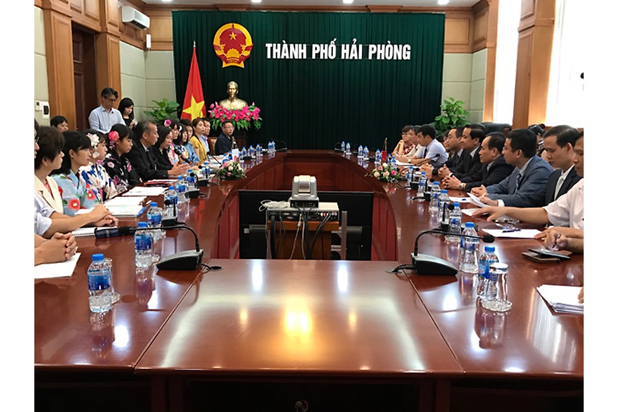 Đồng chí Nguyễn Văn Thành, Phó chủ tịch UBND thành phố hoan nghênh đoàn công tác thành phốKitakyushu. Đồng chí nhấn mạnh những kết quả nổi bật trong quan hệ hợp tác hữu nghị giữa 2 nước ViệtNam– Nhật Bản nói chung và sự kết nghĩa giữa 2 thành phố Hải Phòng vàKitakyushunói riêng. Sự hỗ trợ, giúp đỡ hiệu quả của thành phố Kitakyushu trong lĩnh vực cấp nước và xử lý nước thải giúp Hải Phòng nâng cao năng lực cấp nước, giảm thất thoát nước trên hệ thống, xử lý chất hữu cơ trong nước bằng công nghệ sinh học (U- BCF), đào tạo, phổ cập hệ thống thoát nước, tăng cường năng lực quản lý duy tu trang thiết bị của hệ thống thoát nước, từ đó cải thiện môi trường nước và hoạt động xử lý nước thải của thành phố. Cùng với đó, việc hỗ trợ phát triển năng lượng xanh, phát triển xe điện EV tại đảo Cát Bà, xử lý chất thải rắn… góp phần quan trọng trong sự phát triển bền vững của thành phố Hải Phòng. Đồng chí Phó chủ tịch UBND thành phố trân trọng cảm ơn sự giúp đỡ, hỗ trợ hiệu quả của Kitakyushu và tin tưởng mối quan hệ hợp tác hữu nghị giữa hai địa phương ngày càng bền vững./.