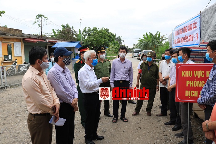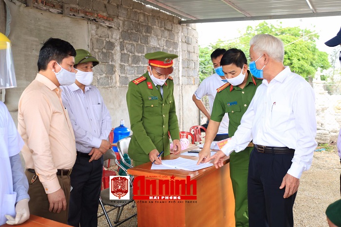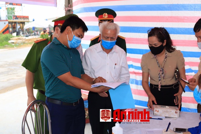 Kiểm tra tại chốt kiểm soát, phòng, chống dịch Covid-19 thuộc địa bàn xã Hồng Phong, huyện An Dương, Đoàn ghi nhận mật độ phương tiện qua lại rất đông, chủ yếu là xe tải và xe cá nhân; xe khách và xe bus không còn lưu thông trên khu vực này. Phó chủ tịch Nguyễn Đình Chuyến yêu cầu tổ công tác kiểm soát, phòng, chống dịch cố gắng ghi chép thật đầy đủ thông tin các trường hợp qua lại khu vực; kiểm tra thân nhiệt cẩn thận, không để bỏ sót bất kì trường hợp nào. Khi phát hiện những trường hợp bất thường phải lập tức báo ngay cho lực lượng liên quan để kịp thời có biện pháp xử lý. Đồng thời, yêu cầu lãnh đạo địa phương phải đảm bảo trang thiết bị y tế, nước uống và cơ sở vật chất cần thiết… cho các thành viên trong tổ công tác kiểm soát, phòng, chống dịch.