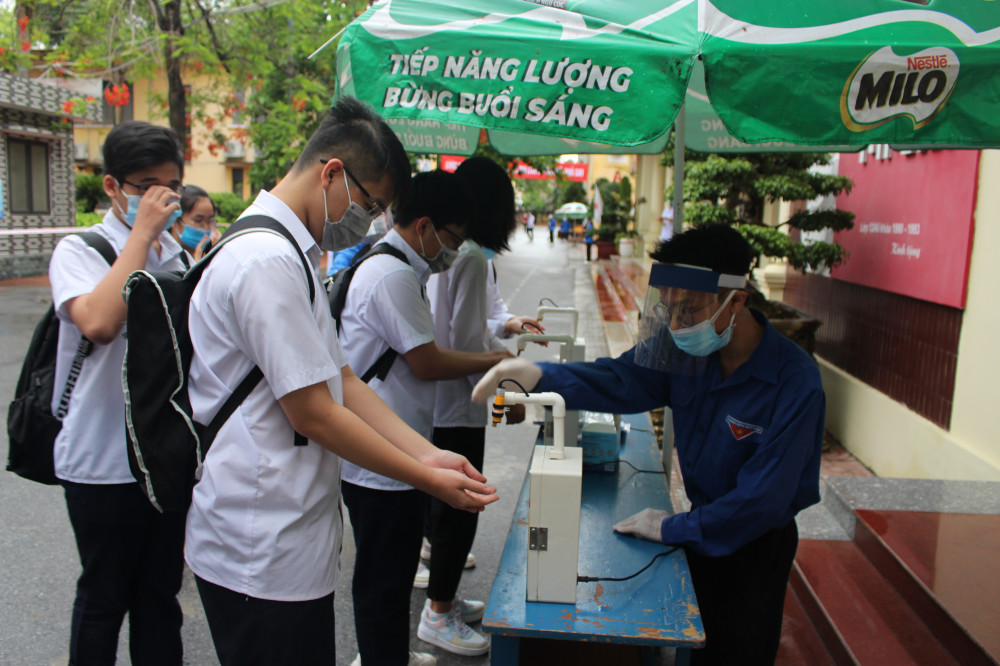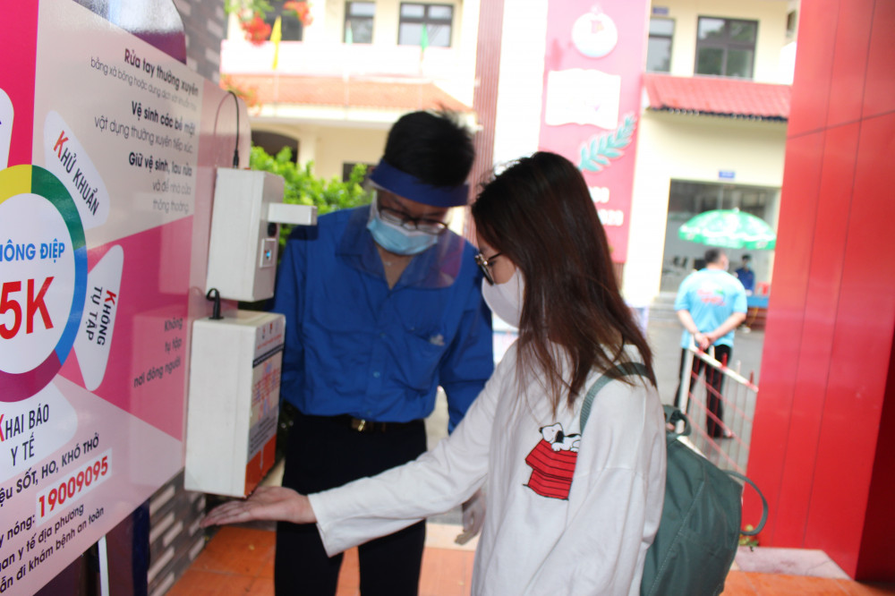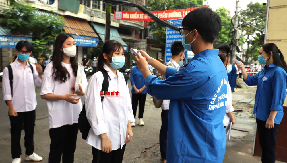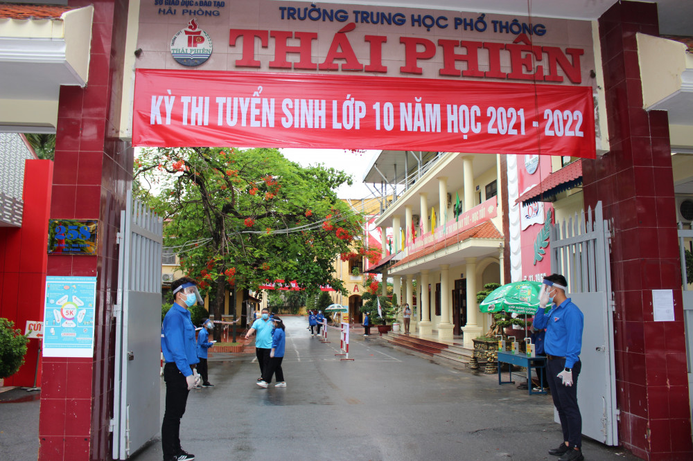 Công tác phòng chống dịch tại điểm thi trường THPT Thái Phiên rất được chú trọng khi các tình nguyện viên đều đeo kính chống giọt bắn, đeo khẩu trang. Các thí sinh có mặt tại điểm thi đều được đo nhiệt độ, sát khuẩn tay đầy đủ.