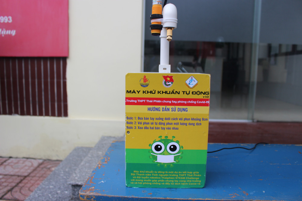 Máy sát khuẩn tự động cũng là một sản phẩm của các bạn học sinh trường Thái Phiên