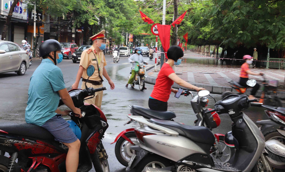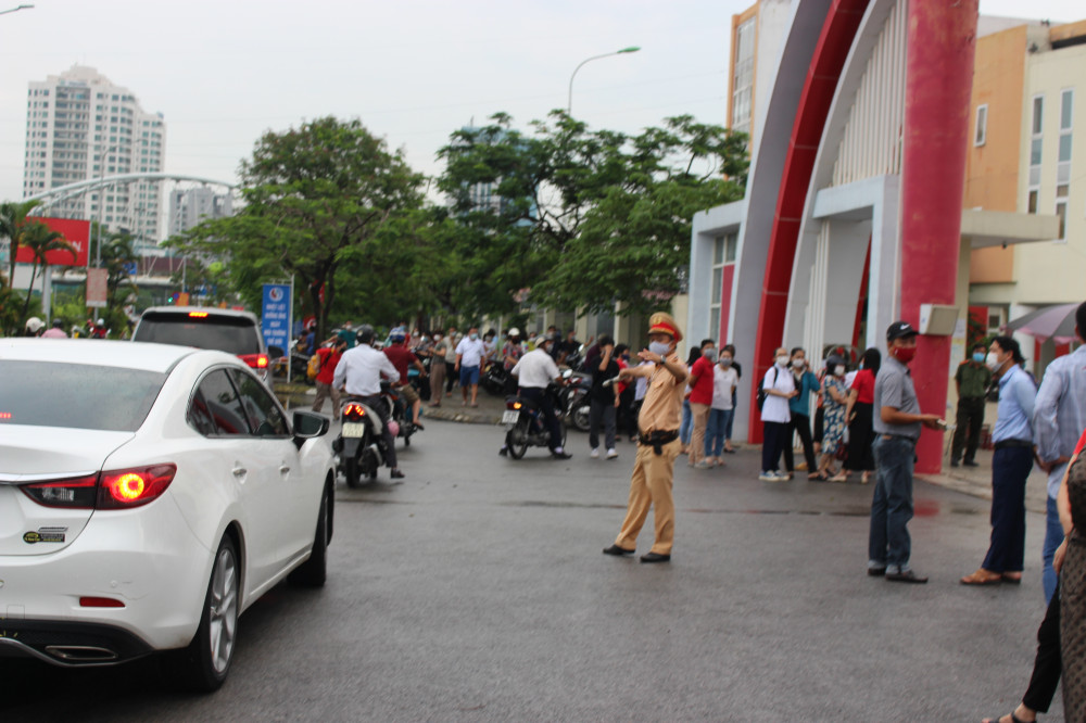 Tại trường THPT chuyên Trần Phú (10A Lê Hồng Phong, phường Đằng Hải, quận Hải An), khá nhiều phụ huynh học sinh tập trung trước cổng trường. Các CBCS công an liên tục nhắc nhở phụ huynh không được đỗ xe dưới lòng đường và điều tiết giao thông trước cổng trường không để tình trạng ách tắc.