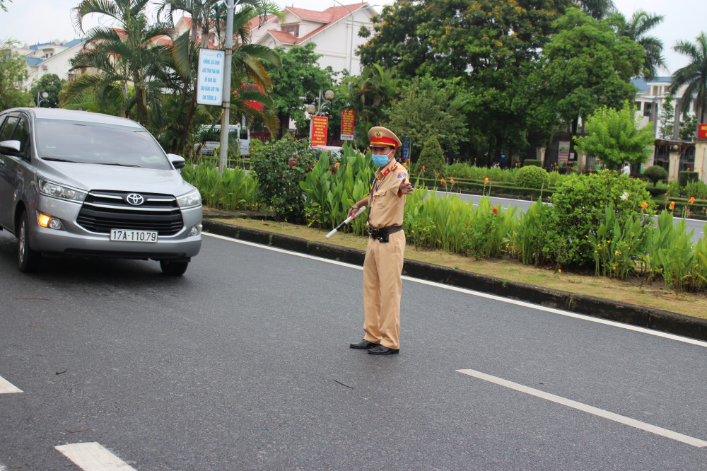 Lực lượng công an làm nhiệm vụ bảo đảm ANTT, ATGT tại điểm thi trường THPT chuyên Trần Phú